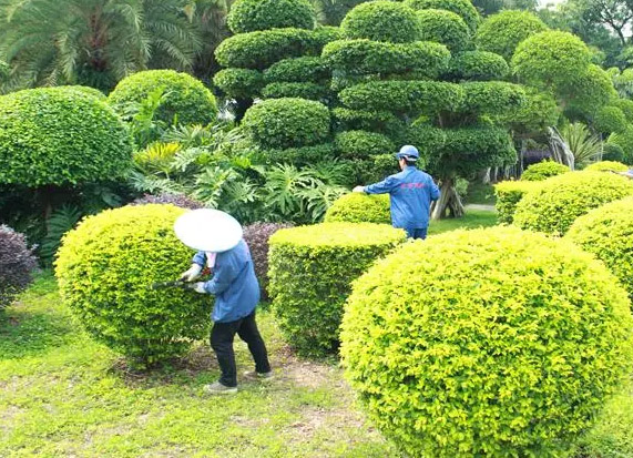 绿地养护分为草坪养护和树木养护。其主要工作内容有:淋水、施肥、修剪整形、除杂、病虫害防治、通气、防台抗汛、防寒等。